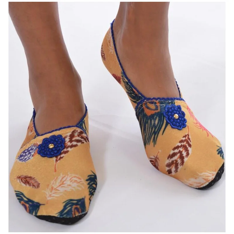 Jaune d’or avec de jolies plumes délire et fantaisie telles sont les chaussons tendance de Ixli en polaire souple fins et élégants