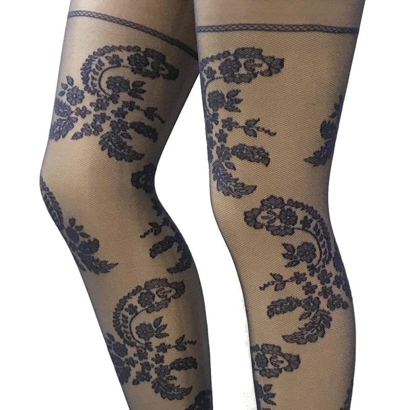 Collant en tulle effet cuissard, Oroblu dessine une jolie dentelle façon jambière , le collant est en tulle indémaillable en dentelle fantaisie