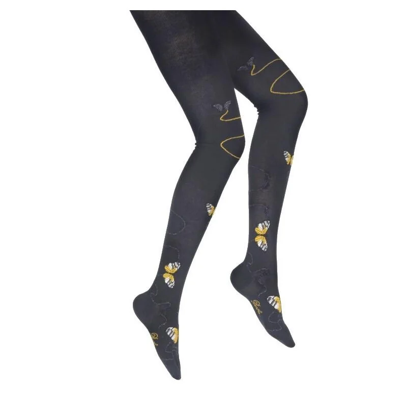 Collant Berthe aux Grands Pieds Veloutes papillons Dorés