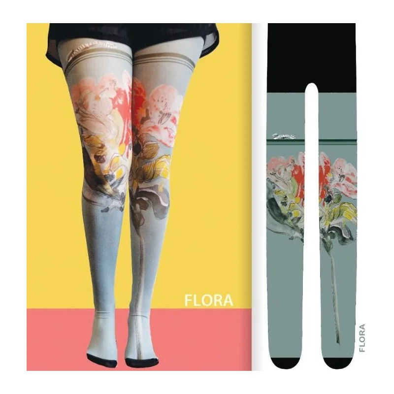 Collant imprimé bleu gris à tendance fleuri , une création poétique pour les jambes de Marieantoilette