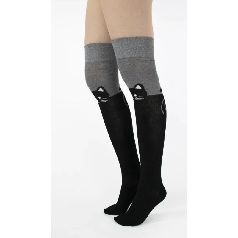 Chaussettes hautes en coton noires grises effet cuissarde sympas