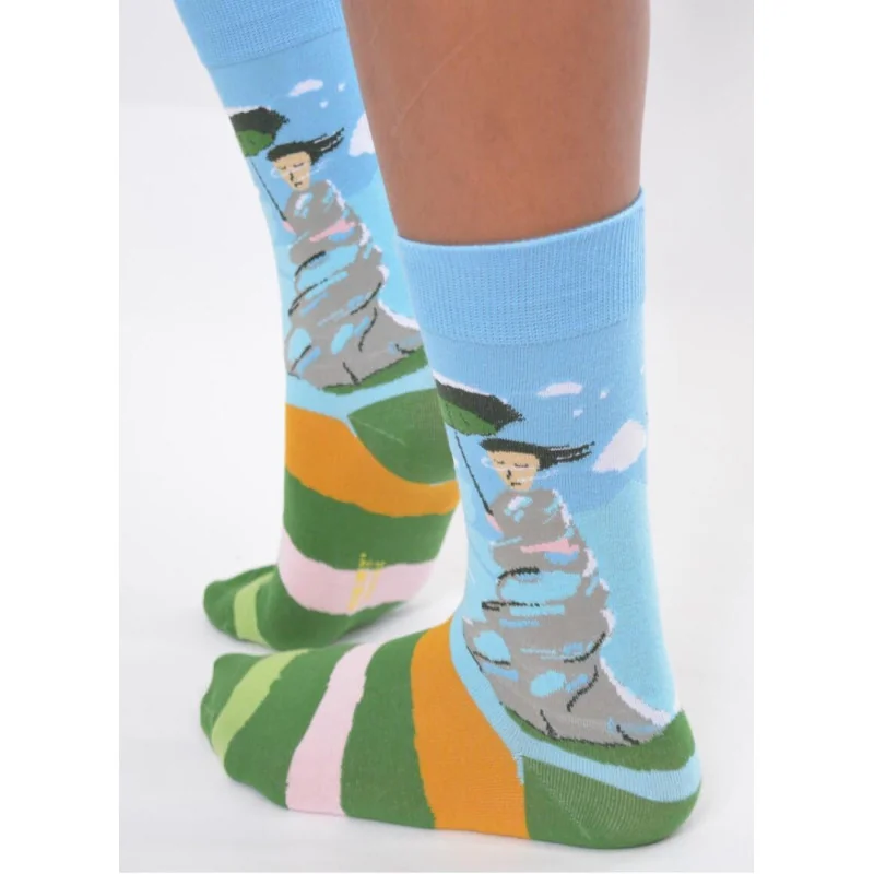 On aime les chaussettes ludiques et fantaisie qui reprend l’oeuvre de Monet la Promenade .