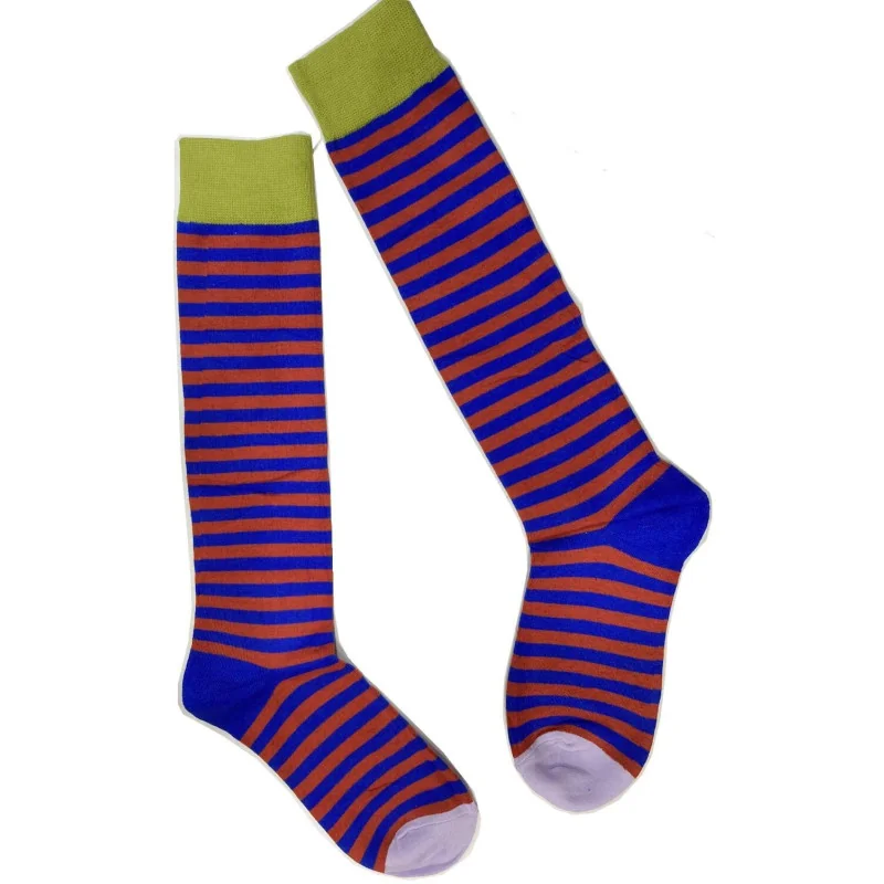 Mi bas Rayures Briques et bleu roi