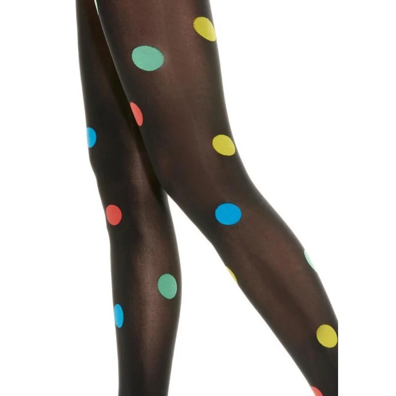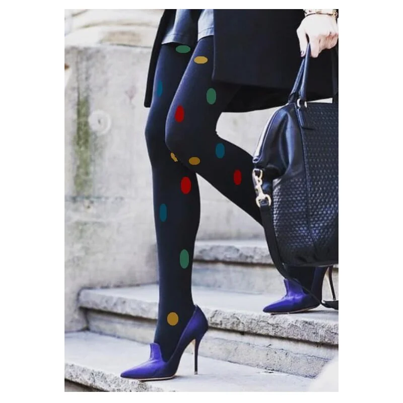 Ce collant mat opaque noir en met plein les yeux avec son jeu de pois de couleurs … Ce collant opaque noir est mat particulièrement doux il est fabriqué sur une base de microfibre 60 Den en Lycra 3 D. Un jeu de pois de couleurs orne ce collant, … très visuel, ce collant est rigolo, certain (e) vous diront que ça fait un peu clown, à en juger par l’effet de le porter avec une joli robe ce collant est d’un effet particulièrement chic et fantaisie.